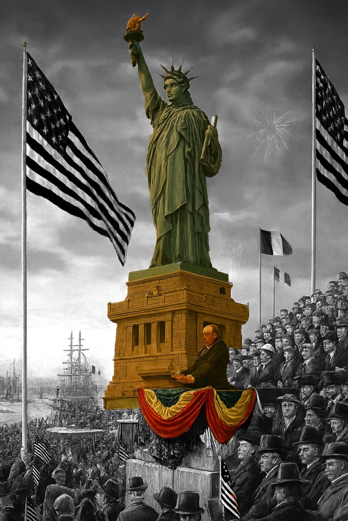 The idea for the Statue of Liberty  was conceived in 1865, when the French historian and abolitionist Édouard de Laboulaye proposed a monument to commemorate the upcoming centennial of U.S. independence (1876), the perseverance of American democracy and the liberation of the nation’s slaves. The Franco-Prussian War delayed progress until 1875, when Laboulaye proposed that the people of France finance the statue and the United States provide the site and build the pedestal. Bartholdi completed the head and the torch-bearing arm before the statue was fully designed, and these pieces were exhibited for publicity at international expositions. The torch-bearing arm was displayed at the Centennial Exposition in Philadelphia in 1876, and in Madison Square Park in Manhattan from 1876 to 1882. Fundraising proved difficult, especially for the Americans, and by 1885 work on the pedestal was threatened by lack of funds. Publisher Joseph Pulitzer, of the New York World, started a drive for donations to finish the project and attracted more than 120,000 contributors, most of whom gave less than a dollar (equivalent to $35 in 2024). The statue was built in France, shipped overseas in crates, and assembled on the completed pedestal on what was then called Bedloe’s Island. The statue’s completion was marked by New York’s first ticker-tape parade and a dedication ceremony presided over by President Grover Cleveland.