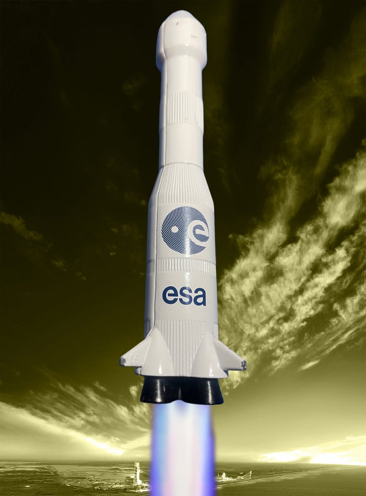 Ariane 1 was the first rocket in the Ariane family of expendable launch systems. It was developed for and operated by the European Space Agency (ESA), which had been formed in 1973, the same year that development of the launcher had commenced. Aérospatiale was designated to lead the programme. Ariane 1 was the first launcher to be developed with the primary purpose of sending commercial satellites into geosynchronous orbit. Crucially, it was designed with the ability of sending a pair of satellites into orbit on a single launcher, thus reducing costs. It’s maiden flight was on the 24th December 1979. As the size of satellites grew, Ariane 1 quickly gave way to the more powerful Ariane 2 and Ariane 3 launchers, which were heavily based upon the original rocket. The Ariane 4 was the last rocket to heavily draw upon the Ariane 1, as the successor rocket Ariane 5 uses a far greater proportion of all-new elements. We celebrate this great rocketry innovation with a scale model of a ESA rocket …