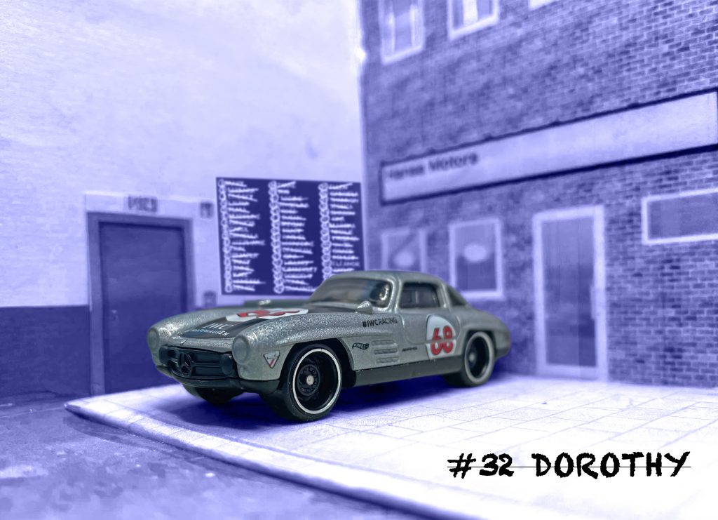 Every person’s name has a corresponding name day. As a car and movie fan, I have taken the 2000 movie Gone in 60 seconds, starring Nicolas Cage an inspiration. In the movie fifty cars are stolen in one night. The fifty cars are listed and given girls names. I have created selective coloration images of these 50 cars. On the name day of the car’s given name, I will post the image. Today it is Dorothy’s name day, and we celebrate it with an image of the 10th car on the list a 1958 Mercedes Benz 300SL Gullwing, the crew called Dorothy.